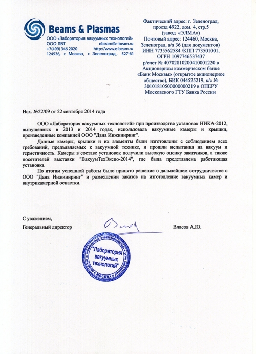 Завод вакуумного оборудования ООО «Дана Инжиниринг» осуществляет деятельность с 2012 года. За это время нашими партнерами стали:
