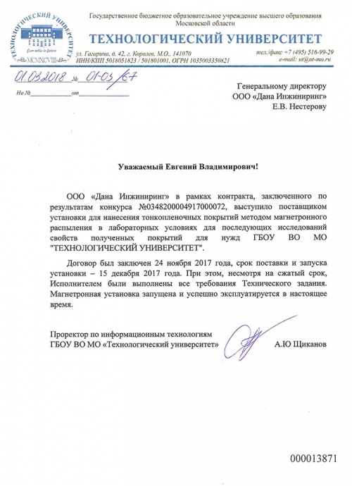 Производитель вакуумного оборудования ООО «Дана Инжиниринг» в Дубне, является единственной российской компанией, которая осуществляет изготовление и разработку ультрасовременных установок. На данный момент одной из целей является выход на международный уровень.