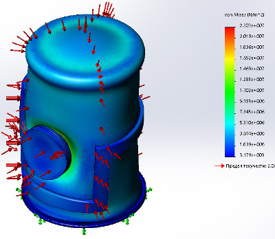 Прочностной и тепловой расчёты. Поскольку вакуумная камера подвергается серьёзному нагружению со стороны атмосферы, возникает необходимость оценить прочность конструкции. Для оценки правильности выбора толщины стенки вакуумной камеры, материала камеры и конструктивных элементов проводится аналитический прочностной расчёт, который затем подтверждается конечно-элементным моделированием нагрузок.